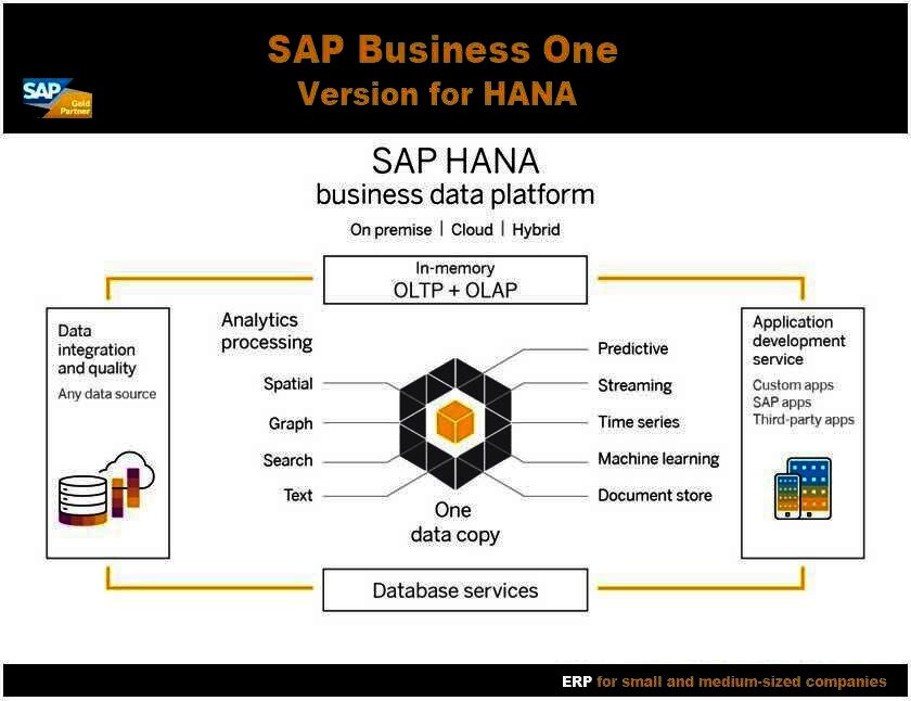 The SAP HANA version for Business One runs completely in memory. It is the first business management solution for small and medium-sized enterprises (SMEs).