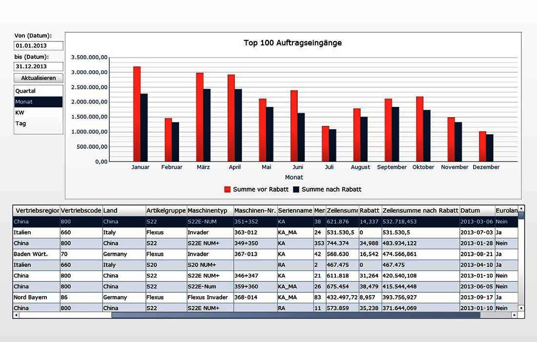 With fully integrated SAP Crystal Reports reporting software, you can create meaningful and visually appealing reports that provide insight across the enterprise. Executives can see exactly how sales, costs and cash flow are developing, enabling them to assess business development correctly and make quick and informed decisions. This business intelligence (BI) tool provides interactive reports and dashboards, as well as powerful data visualization.